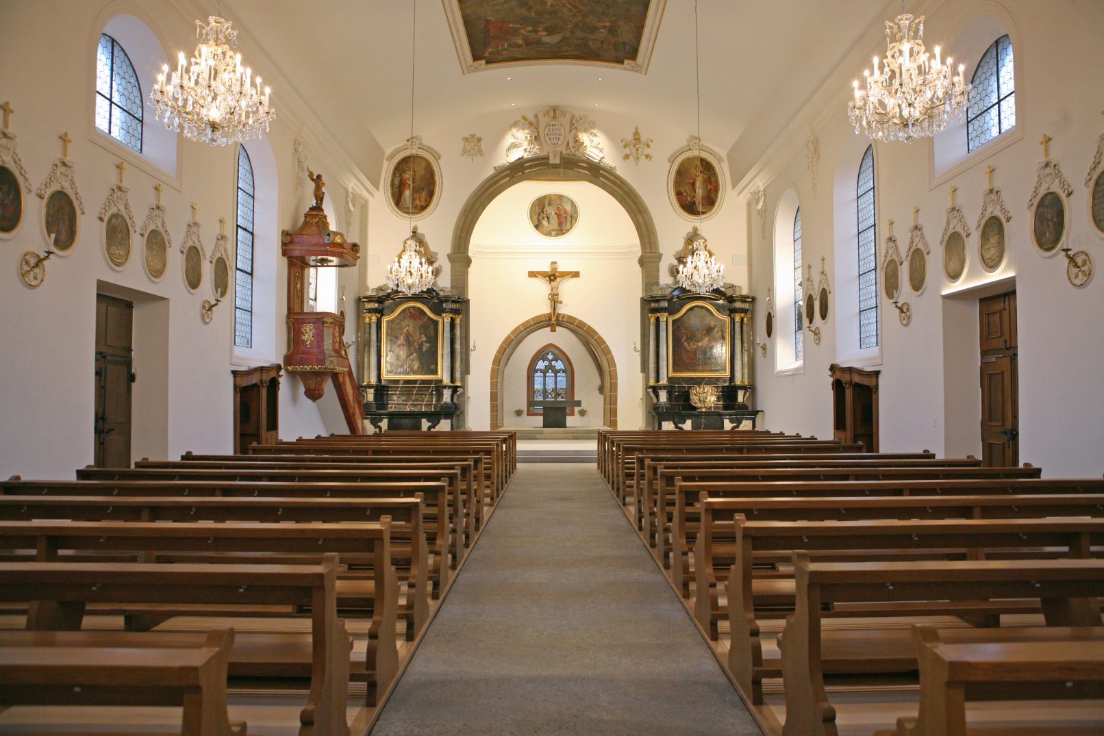 Das Renovationskonzept beinhaltet die Aussenrenovation (Neueindeckung des Ziegeldaches; ersetzen des Aussenputzes; diverse Natursteinarbeiten) und die Innenrenovation (Neugestaltung der Chor- und Seitenkapelle; Durchbruch untere-obere Empore; Neugestaltung der Vitrinen; Renovation der Wände, Decken und Gemälde). Zudem wurde ein neues Konzept für die Wärmeverteilung mit Warmluft erarbeitet. Die Bänke wurden ergonomisch angepasst.
